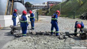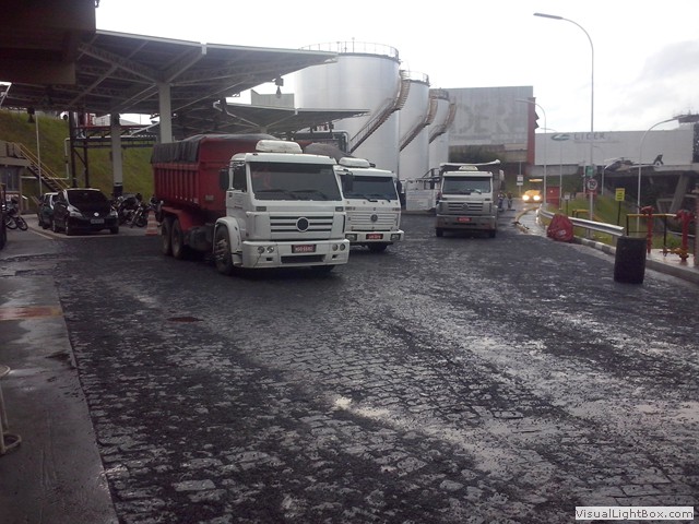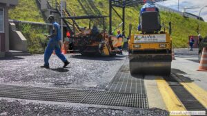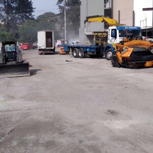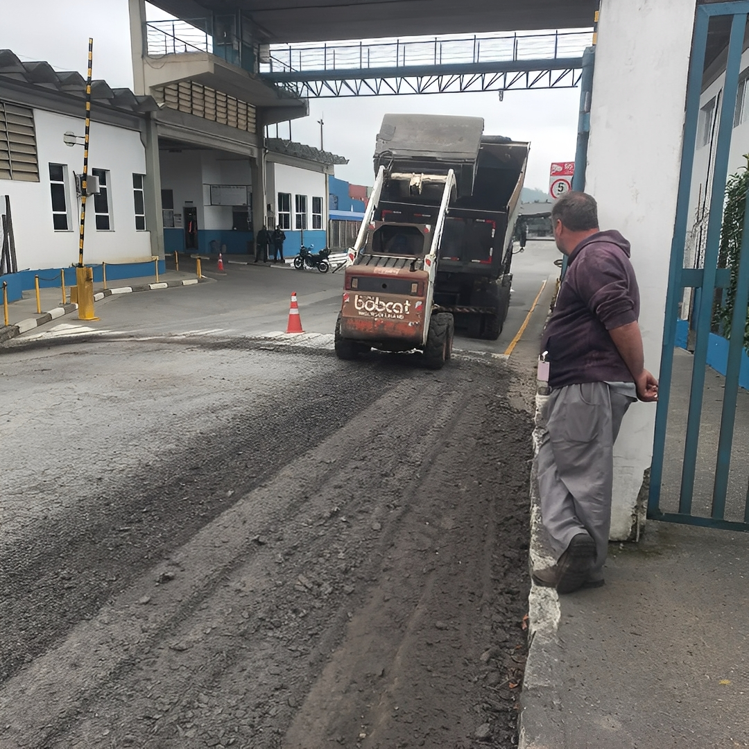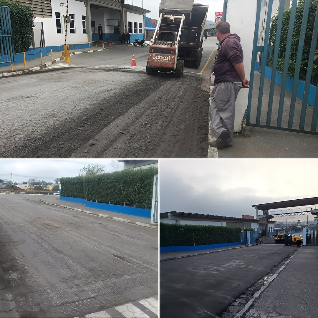 SERVIÇO DE PAVIMENTAÇÃO: SCANIA EM SÃO BERNARDO DO CAMPO: Preparação Base com Bica Corrida e BGS, Aplicação de RR2c (piche), Aplicação manualmente de CBQU (Capa Asfáltica) – devidamente compactada com rolo compactador.