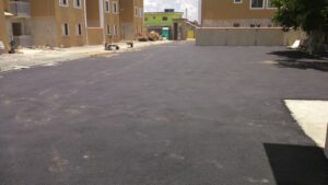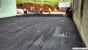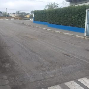 SERVIÇO DE PAVIMENTAÇÃO: Construtora Mariana – Preparação Base B.C. (Bica Corrida), Aplicação de RR2c (piche), Aplicação manualmente de CBQU (Capa Asfáltica) – devidamente compactada com rolo compactador.