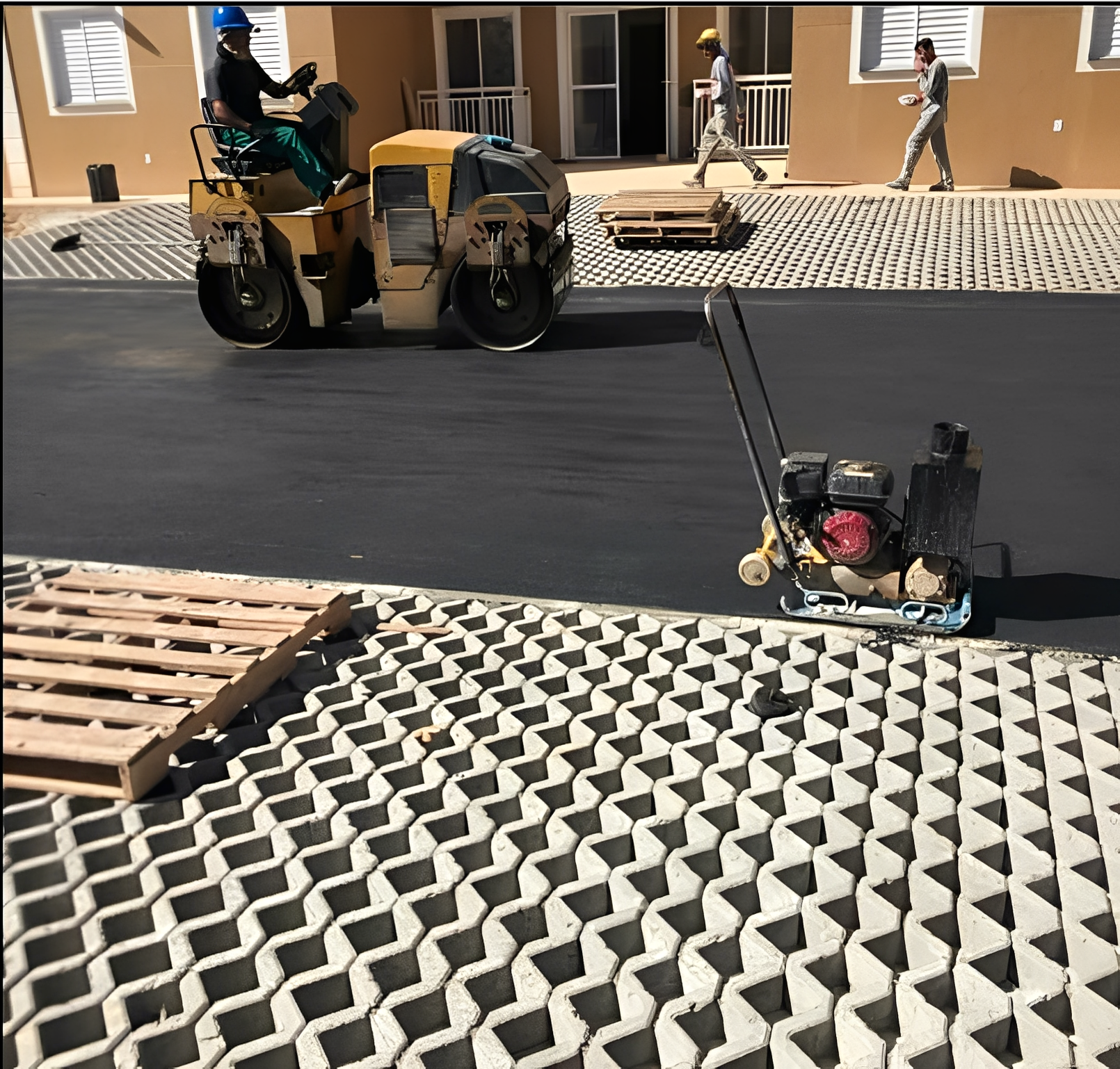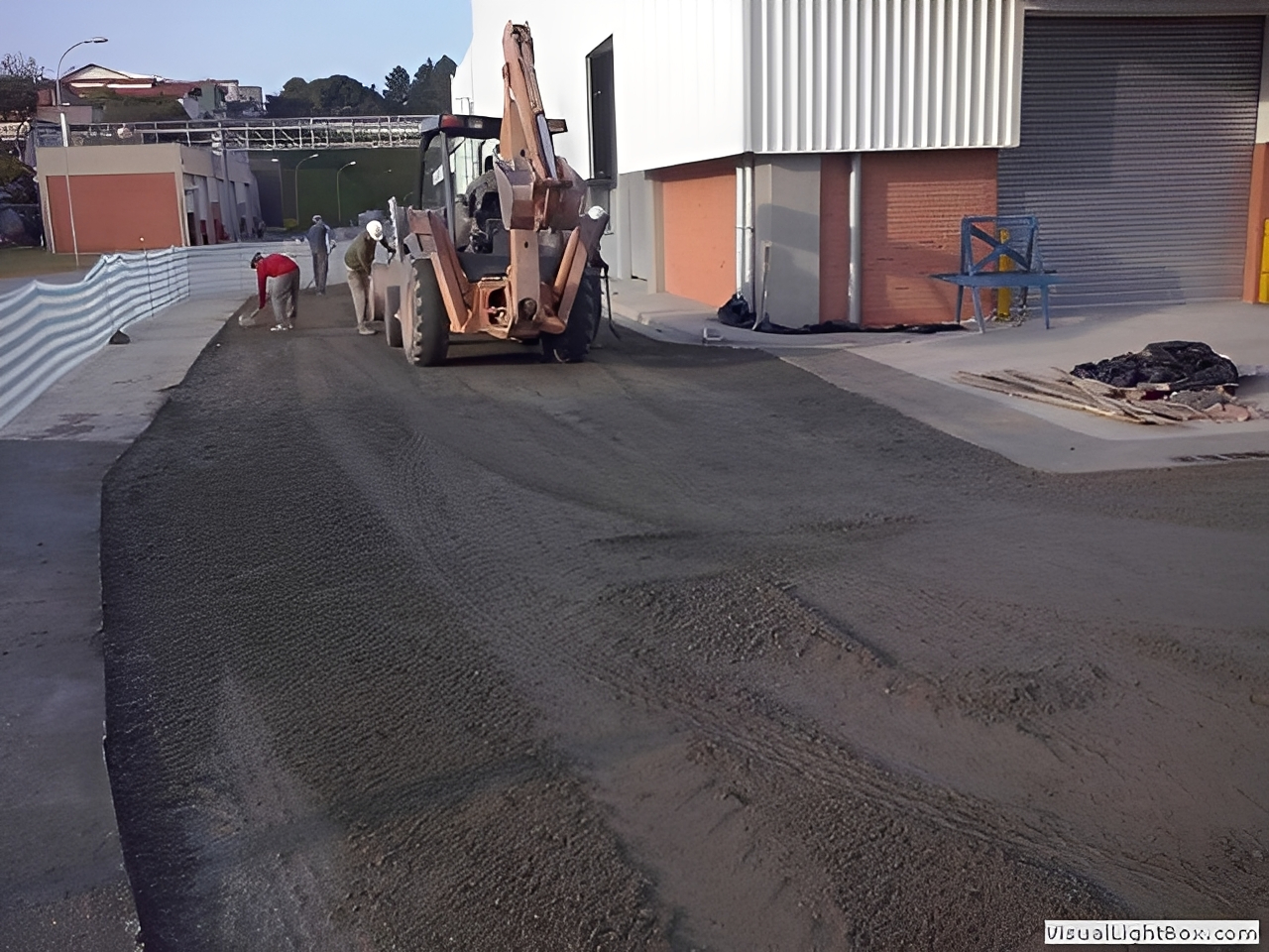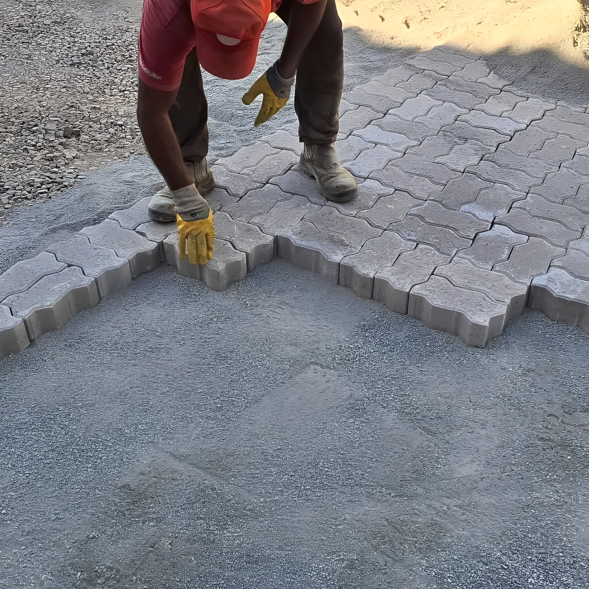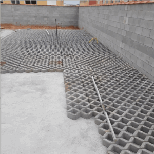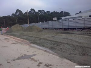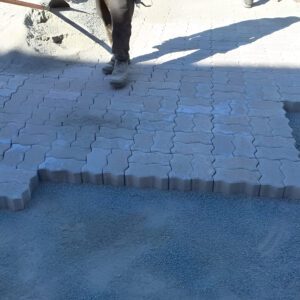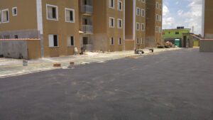 SERVIÇO DE PAVIMENTAÇÃO PERMEÁVEL – CONJUNTO COMERCIAL CHINA HAY GUARULHOS: Preparação Base com B.C. Bica Corrida e colocação piso intertravado na cor natural conjunto de galpões comerciais para transportadoras – devidamente compactada com rolo compactador.
