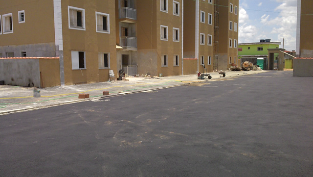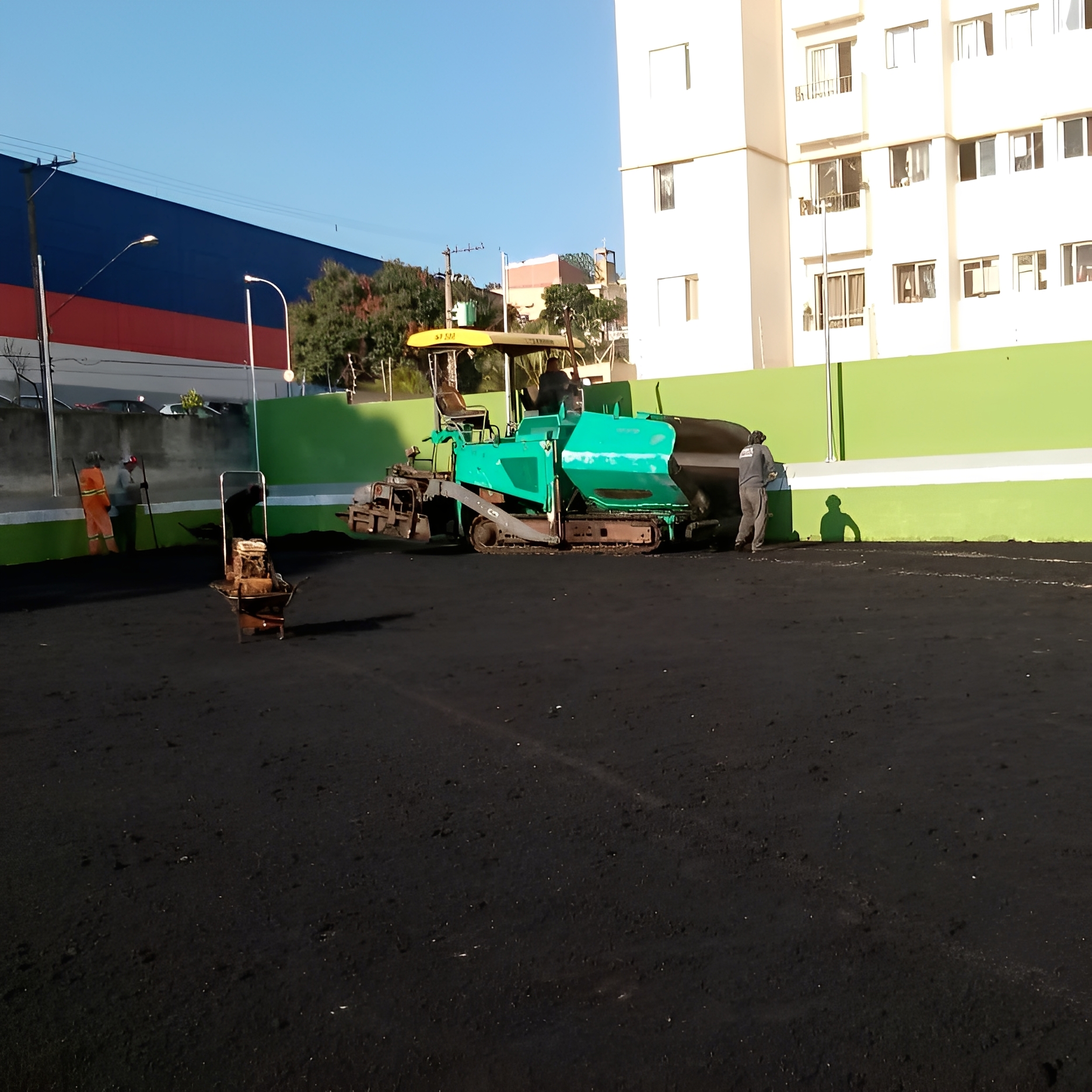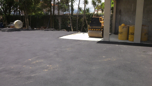 SERVIÇO DE PAVIMENTAÇÃO: Construtora Cavazani – Guarulhos / SP: Preparação Base, Aplicação de RR2c (piche) e Aplicação de CBQU (Massa Asfáltica) devidamente compactada com rolo vibratório