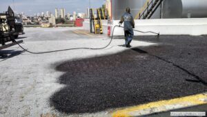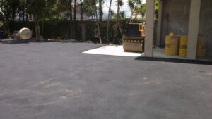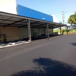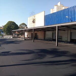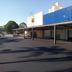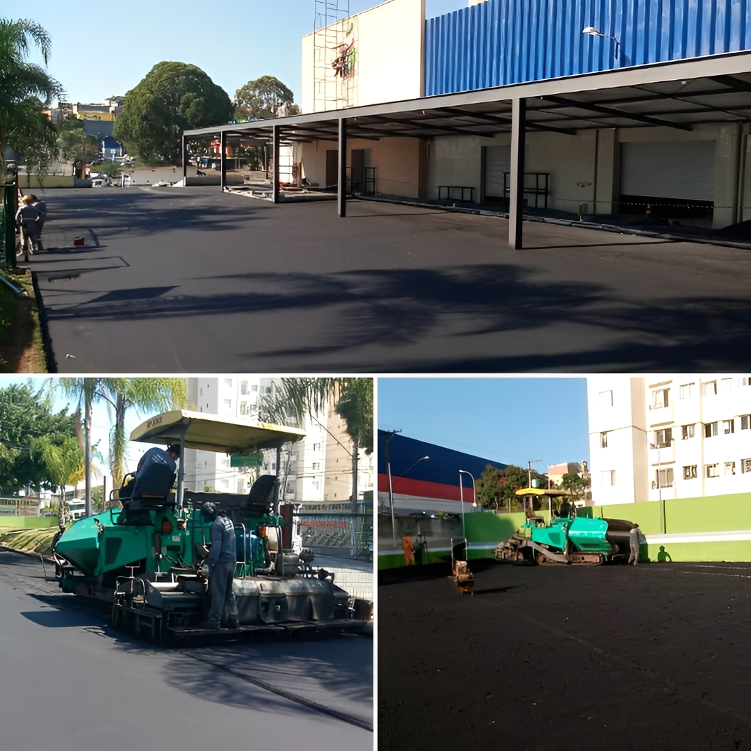 SERVIÇO DE PAVIMENTAÇÃO: Supermercado PegPese – Aplicação de RR2c (piche), Aplicação  de CBQU (Capa Asfáltica) com Vibro Acabadora – devidamente compactada com rolo compactador.