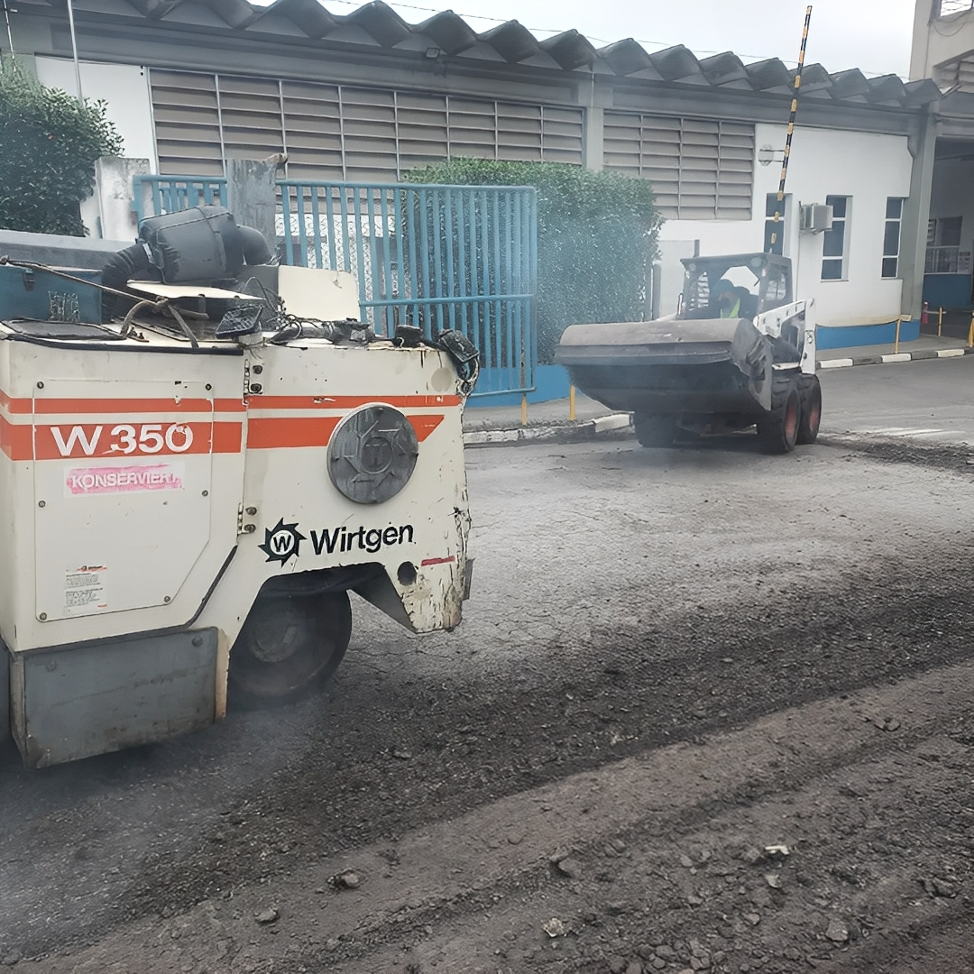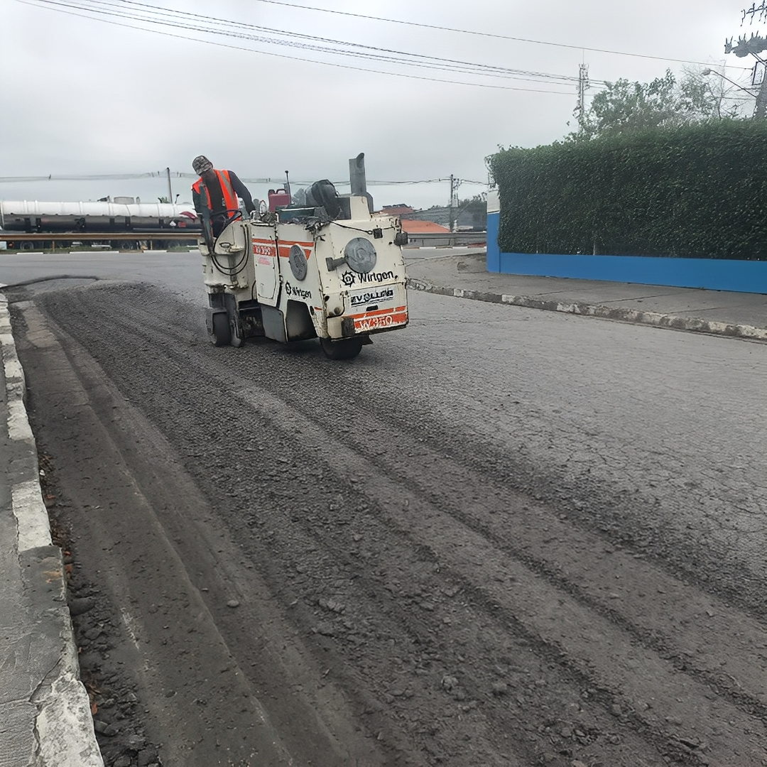 SERVIÇO DE PAVIMENTAÇÃO: CRAGEA SUZANO: Execução fresagem, Aplicação de RR2c (piche), Aplicação manualmente de CBQU (Capa Asfáltica) – devidamente compactada com rolo compactador.